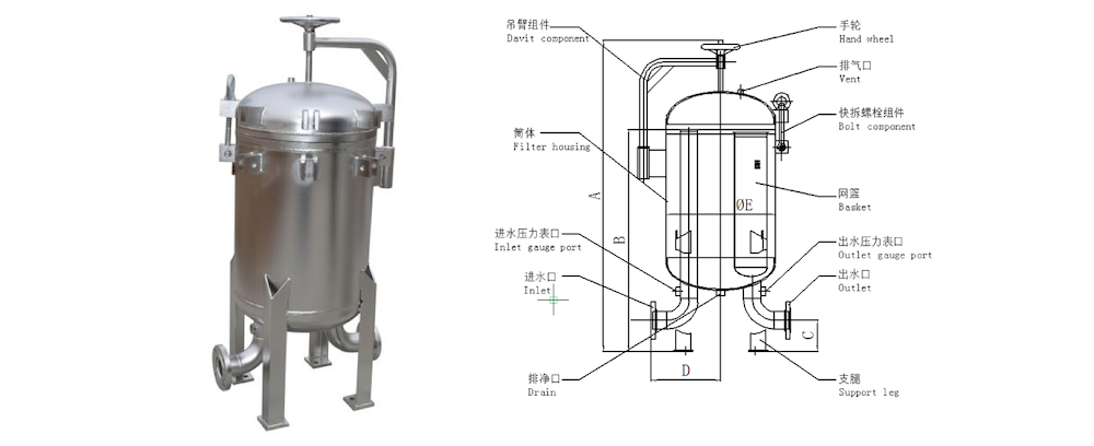(3)多袋式快开过滤器(公称压力1.0MPa)